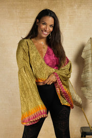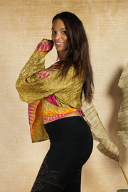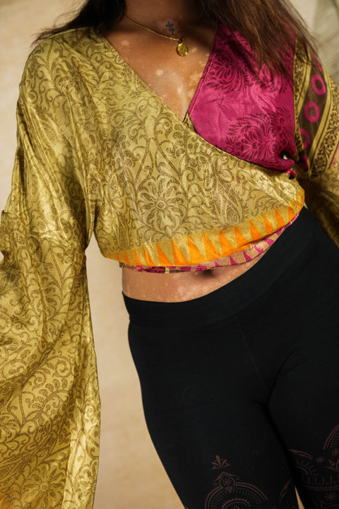 This top is made for movement. With her gorgeous flowing repurposed silky fabrics - No worms involved, promise - and epic sleeves, be sure to turn every boring old space into a place where people hold roses between their teeth.