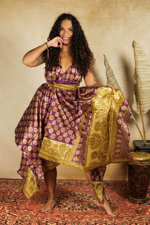 Uma Nomad ist eine nachhaltige Modemarke, wir stellen unsere Kleidung nur aus Vintage- und Second-Hand-Stoffen her. Da wir aus jedem Stoff, den wir wiederverwenden, nur 1 Stück herstellen können, sind alle unsere Kleidungsstücke wirklich einzigartig in Farbe und Druck.