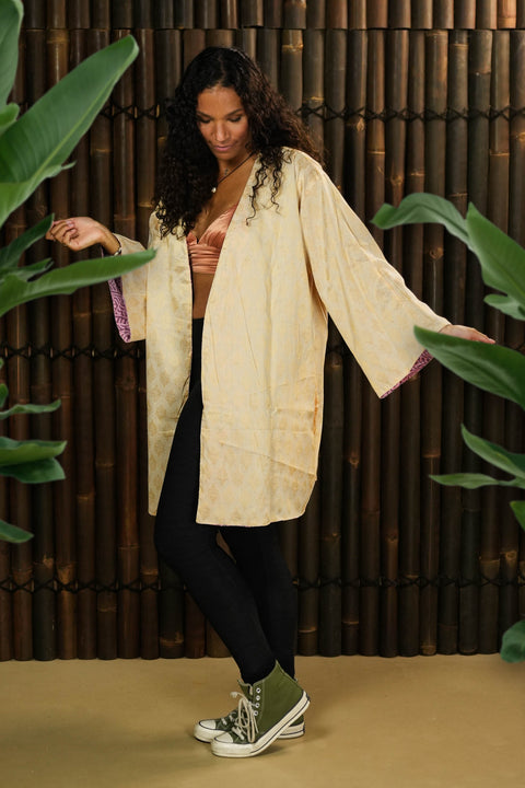 Uma Nomad ist eine nachhaltige Modemarke und wir stellen unsere Kleidung nur aus Vintage- und Second-Hand-Stoffen her. Da wir aus jedem Stoff, den wir wiederverwenden, nur 1 Stück herstellen können, sind alle unsere Kleidungsstücke wirklich einzigartig in Farbe und Druck.