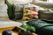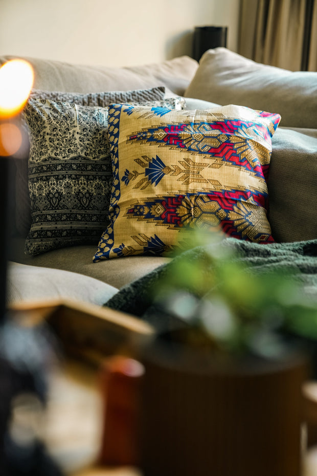 These cute pillowcases are made of leftover fabric that have been cut off the pieces of clothing. Like this we really use every last bit of fabric and every pillowcase is unique. Yay for sustainable interior!