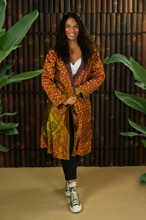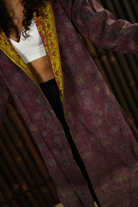 Bohemian Sustainable Fashion - Reversible Jacket ‘Isa’ • XS/S • short • cotton lining • without belt - Uma Nomad