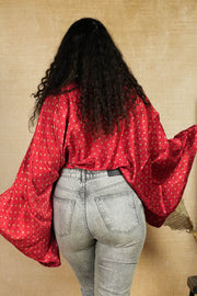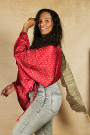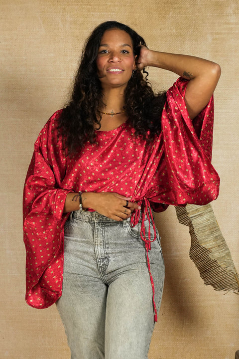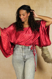 Dit ontwerp rockt een epische open rug , heeft wijde kimono-achtige mouwen; waardoor elke beweging eruitziet als een vloeiend kunstwerk. We hebben een trekkoord door de onderkant van de top geregen waarmee je de pasvorm van de top kunt aanpassen. Draag hem los en relaxed of crop hem een beetje om je mooie taille te accentueren!