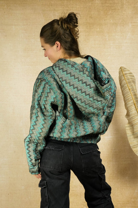 Besides looking amazing, it’s made from all repurposed materials. All the fabrics used are forgotten, rejected or vintage fabrics that we have collected ourselves by hand and heart and turned into an eco-friendly piece of art unlike any other - truly, you’ll never be able to find or make a jacket exactly like this one: this bomber is unique, just like you.