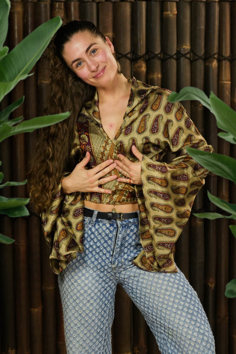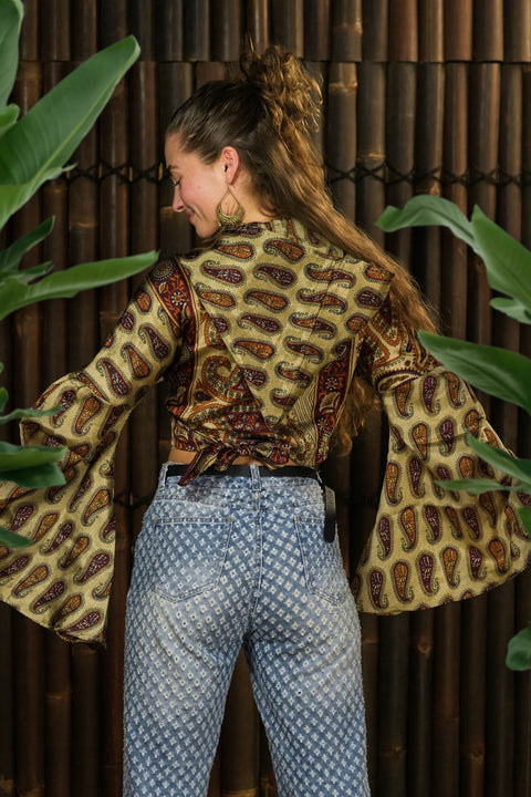Deze top is gemaakt om in te bewegen. Met haar prachtige vloeiende zijdeachtige stoffen en epische mouwen, zorgen ervoor dat je elke saaie oude ruimte verandert in een plek vol romance.