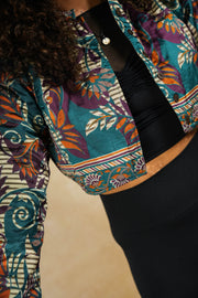 Omdat dit kledingstuk is gemaakt van gerecyclede vintage en tweedehands stoffen die we zelf van over de hele wereld verzamelen, is het erg moeilijk om de exacte samenstelling te bepalen van elke stof die we hergebruiken. We hopen dat je ons dit kunt vergeven. Dat gezegd hebbende, de meeste stoffen die we gebruiken zijn ofwel Viscose of Rayon.