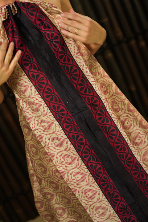 Oké, dus je moet weten dat ik, Sammy; De oprichter van Uma Nomad draagt ​​deze jurk al jaren in veel verschillende stoffen. Het is mijn meest favoriete jurk ter wereld, en het kostte me wat overtuigingskracht om het met iedereen te delen. - Je mag me kleinzielig noemen, maar soms vind ik het leuk om even iets voor mezelf te hebben.
