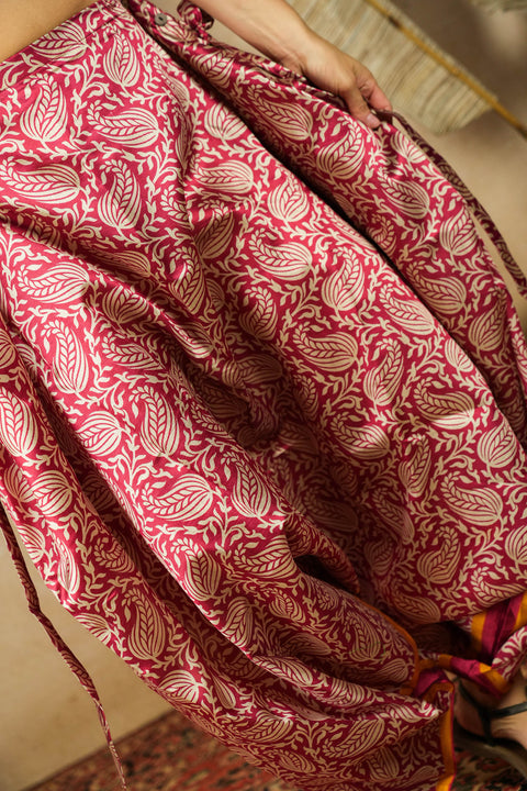 Het rockt een episch laag kruis, en de maat is verstelbaar door de schattige kleine kokosnootknopen in de taille, waardoor het een van makkelijk inpasbaar is op jouw maat. Daarnaast heeft het twee trekkoorden aan beide kanten waardoor een split en aanpassing van de lengte mogelijk is, als je daarvoor kiest.
