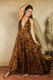 Dit is een lange maxi-jurk met een triangeltop en een prachtige open rug. We hebben hem gemaakt met een set van 3 trekkoorden, waarmee je de lengte, borst- en tailleomvang kunt aanpassen. Hierdoor kunnen vrouwen in alle soorten en maten deze beauty dragen.