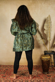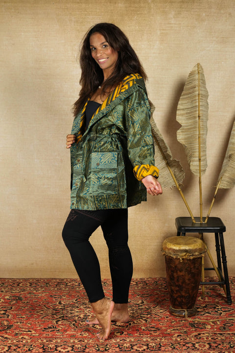 Een parka-jack gemaakt van gerecyclede materialen; prachtige vergeten stoffen die we hebben gevonden en getransformeerd tot unieke draagbare kunstwerken zoals deze hier. Een jas gemaakt voor epische avonturen 'on the fly'. Trek gewoon je parka aan voor wat extra kleur.