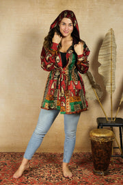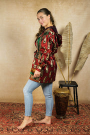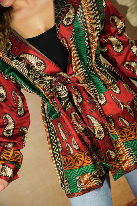 Een parka-jack gemaakt van gerecyclede materialen; prachtige vergeten stoffen die we hebben gevonden en getransformeerd tot unieke draagbare kunstwerken zoals deze hier. Een jas gemaakt voor epische avonturen 'on the fly'. Trek gewoon je parka aan voor wat extra kleur.