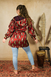 Hergebruik en upcycling van oude stoffen is een milieuvriendelijke zet, aangezien nieuwe stoffen niet gemaakt hoeven te worden en door deze prachtige afgedankte materialen te hergebruiken, belanden ze niet op de vuilnisbelt. Daarnaast maken we al onze kleding op zonne-energie en hebben we een zero-waste policy! Als je meer wilt lezen over onze ethische en duurzame bedrijfsvoering, kijk dan hier!