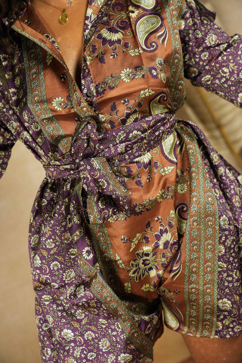 Samar is een playsuit met schattige kokosnoot knoopjes en een brede riem om die mooie zachte stof een prachtige taille te geven.