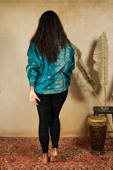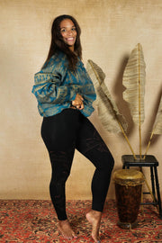 Omdat dit kledingstuk is gemaakt van gerecyclede vintage en tweedehands stoffen die we zelf van over de hele wereld verzamelen, is het erg moeilijk om de exacte samenstelling te bepalen van elke stof die we hergebruiken. We hopen dat je ons dit kunt vergeven. Dat gezegd hebbende, de meeste stoffen die we gebruiken zijn ofwel Viscose of Rayon.