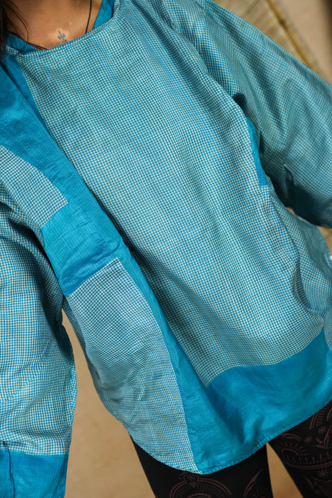 We hebben deze iets langer gemaakt voor een nog meer cozy en cute oversized sweaterlook. Het is lekker warm voor de koudere maanden of koude avonden, met aan elke kant een ander soort hergebruikt materiaal.