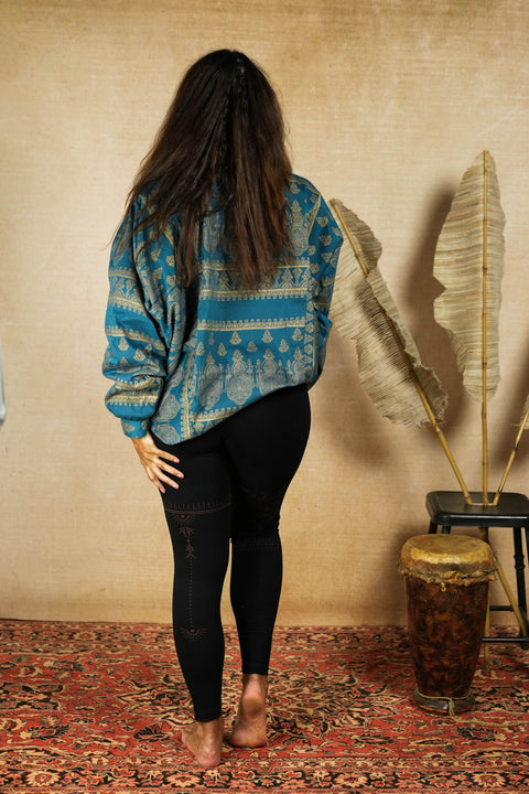 Omdat dit kledingstuk is gemaakt van gerecyclede vintage en tweedehands stoffen die we zelf van over de hele wereld verzamelen, is het erg moeilijk om de exacte samenstelling te bepalen van elke stof die we hergebruiken. We hopen dat je ons dit kunt vergeven. Dat gezegd hebbende, de meeste stoffen die we gebruiken zijn ofwel Viscose of Rayon.