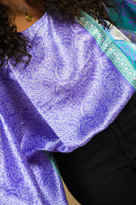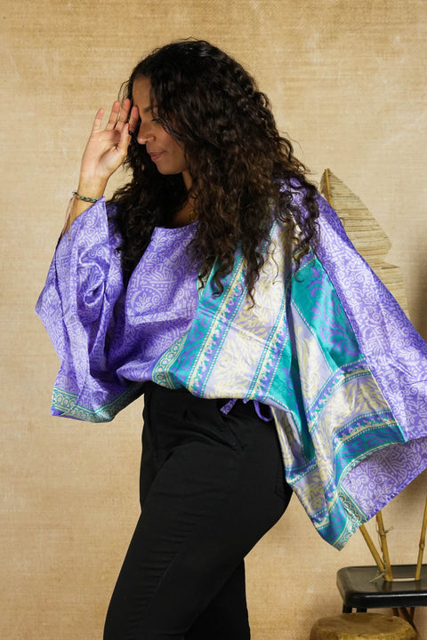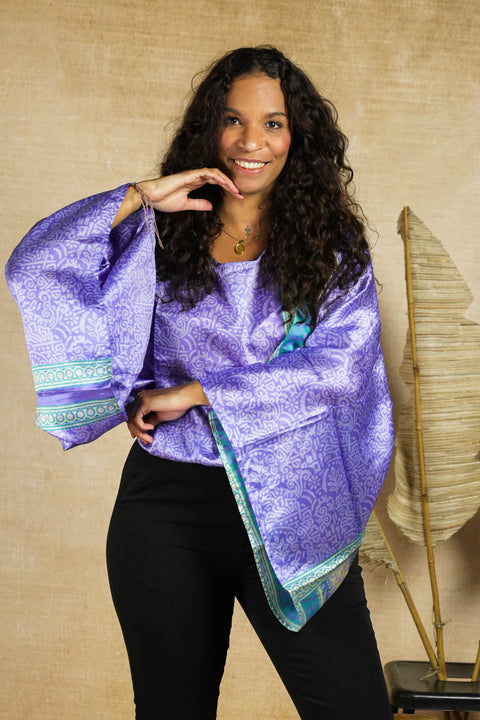 Dit ontwerp rockt epische kimono-achtige wijde mouwen, waardoor elke beweging eruitziet als een vloeiend kunstwerk. We hebben een trekkoord door de onderkant van de top geregen waarmee je de pasvorm van de top kunt aanpassen. Draag hem los en relaxed of crop hem een beetje om je mooie taille te accentueren!