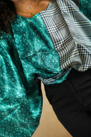 Omdat dit kledingstuk is gemaakt van gerecyclede vintage en tweedehands stoffen die we zelf van over de hele wereld verzamelen, is het erg moeilijk om de exacte samenstelling te bepalen van elke stof die we hergebruiken. We hopen dat je ons dit kunt vergeven. Dat gezegd hebbende, de meeste stoffen die we gebruiken zijn ofwel Viscose of Rayon.