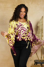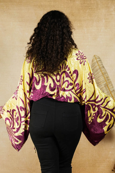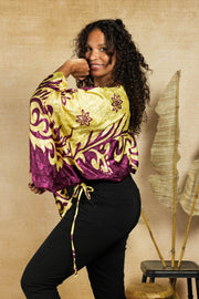 Dit ontwerp rockt epische kimono-achtige wijde mouwen, waardoor elke beweging eruitziet als een vloeiend kunstwerk. We hebben een trekkoord door de onderkant van de top geregen waarmee je de pasvorm van de top kunt aanpassen. Draag hem los en relaxed of crop hem een beetje om je mooie taille te accentueren!
