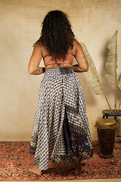 Omdat dit kledingstuk is gemaakt van gerecyclede vintage en tweedehands stoffen die we zelf van over de hele wereld verzamelen, is het erg moeilijk om de exacte samenstelling te bepalen van elke stof die we hergebruiken. We hopen dat je ons dit kunt vergeven. Dat gezegd hebbende, de meeste stoffen die we gebruiken zijn ofwel Viscose of Rayon.