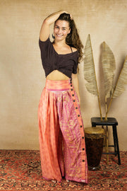 These 'Hygge' trousers are exactly the same as our original 'Hygge' design, except that these are fully made from vintage Indian Sari's, our absolute favourite fabrics to recycle. This makes them more airy and thus a great fit for the sun splashed, warm temperatures kind of days.