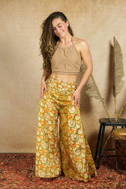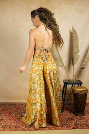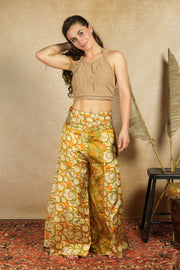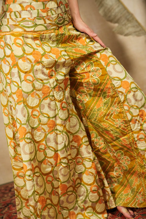 Deze broek is prachtig, met wijde lange pijpen en handgemaakt van hergebruikte stoffen die we van over de hele wereld verzamelen.
