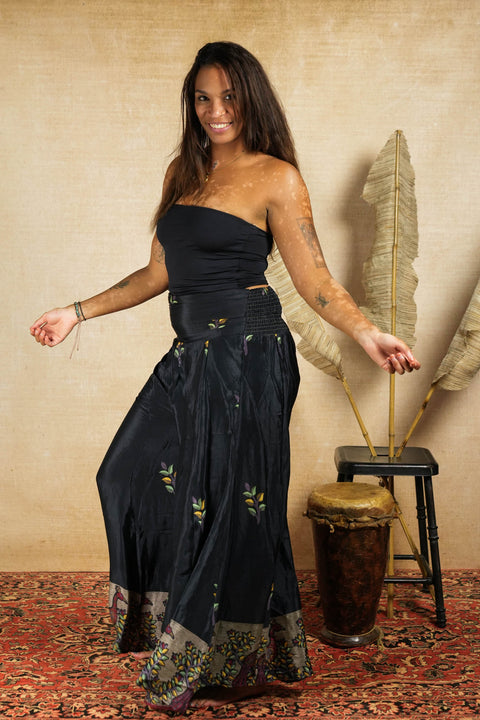 These trousers are gorgeous, with wide long sleeves, and handmade from repurposed fabrics that we collect from all over the world.