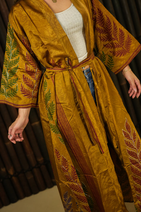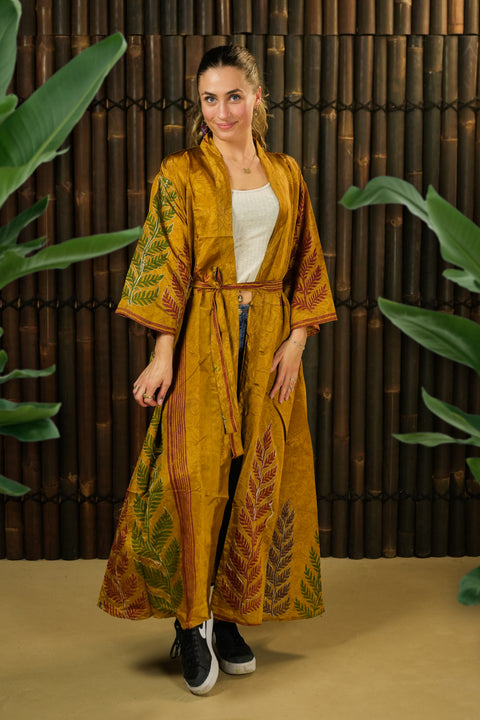 An epic human being who cares for our planet, and wears jackets-slash-robe-slash-dresses made from recycled fabrics. A one-of-a-kind, because we cannot possibly make another one exactly like this one.
