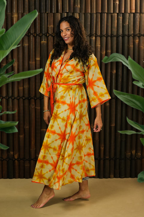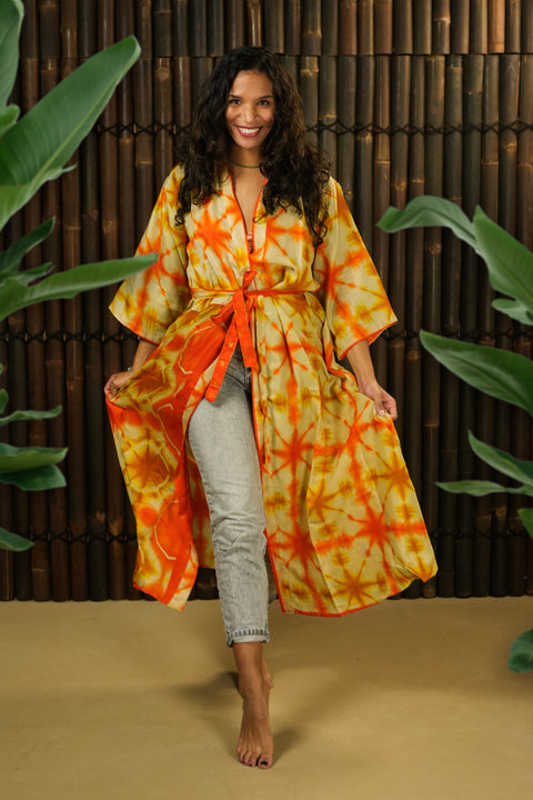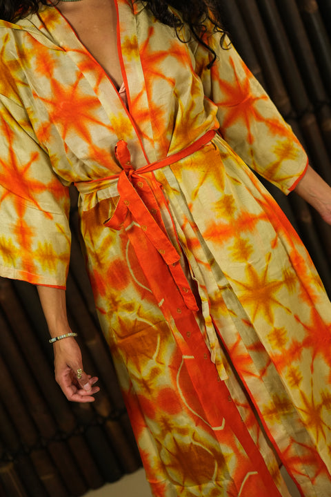 Bohemian Sustainable Fashion - Kimono-inspired Jacket dress 'Ukiyo' - with imperfections - Uma Nomad