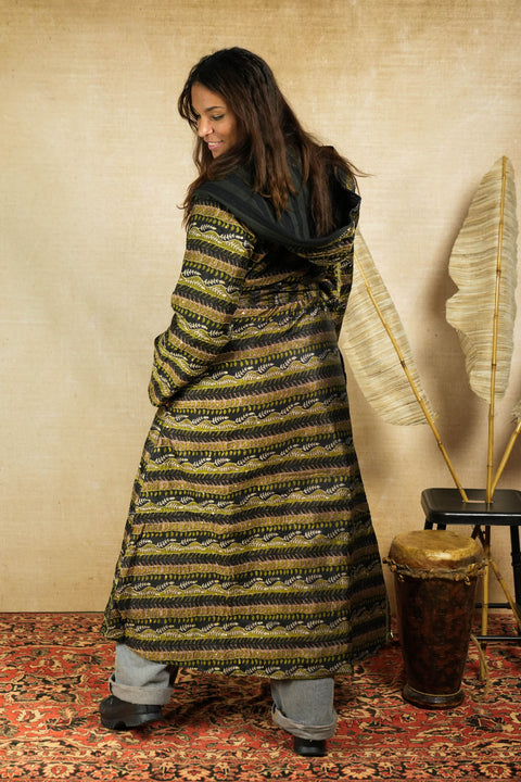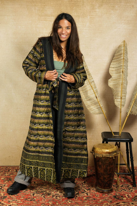 This variant of Isa has two sides of our favourite material to repurpose; two different beautiful vintage Indian sarees with a cotton padding. We also have 'Isa' with recycled cotton or saree lining, for the warmer months. You can find these here.