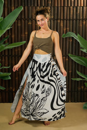We are really proud of this design and believe it turned out perfect; we made it with a high waist belt with lace on the back which allow you to adjust for size, and cute coconut buttons to allow for an epic slit. It does too have a pocket on one side, very handy for keeping your essentials close.